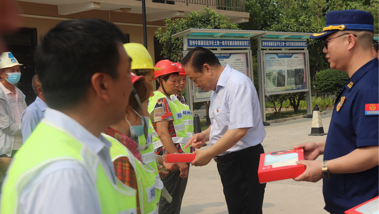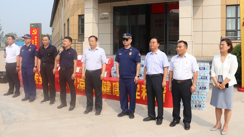 進(jìn)入夏季以來,持續(xù)出現(xiàn)的高溫天氣,給奮戰(zhàn)在建設(shè)一線的施工人員帶來嚴(yán)峻考驗(yàn),廣大職工不畏酷暑,堅(jiān)守崗位,辛勤付出。為做好廣大職工的防暑降溫工作,切實(shí)保護(hù)職工身體健康,6月11日,鄭州市總工會(huì)、鄭州市消防救援支隊(duì)到鄭州地產(chǎn)集團(tuán)西流湖公司中原新區(qū)土地一級(jí)開發(fā)項(xiàng)目指揮部開展主題為“送清涼、送安全、送健康、促和諧”的夏季送清涼活動(dòng)。鄭州市一級(jí)巡視員、市總工會(huì)黨組書記、主席趙新中,市消防救援支隊(duì)副支隊(duì)長、滅火救援指揮部部長李隆,市總工會(huì)副主席宋少丹,鄭州地產(chǎn)集團(tuán)有限公司監(jiān)事會(huì)主席、工會(huì)主席李靜波及西流湖公司黨支部書記、董事長、總經(jīng)理吉獻(xiàn)亮等領(lǐng)導(dǎo)出席活動(dòng)。活動(dòng)由西流湖公司副總經(jīng)理昌磊主持。