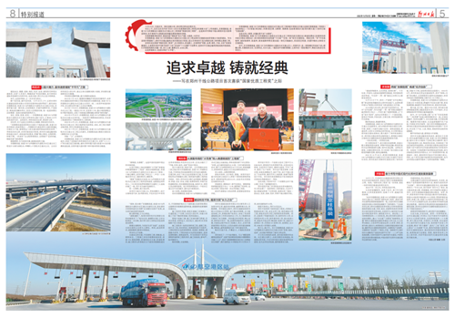 當(dāng)日上午,從在北京召開的“2022—2023年度國家優(yōu)質(zhì)工程獎總結(jié)表彰大會”上傳來喜訊,京港澳高速、省道102與四港聯(lián)動大道組合式互通立交工程榮獲“國家優(yōu)質(zhì)工程獎”。這是鄭州市國省干線公路項(xiàng)目首次獲得該獎項(xiàng),標(biāo)志著我市公路建設(shè)高質(zhì)量發(fā)展取得新的突破。