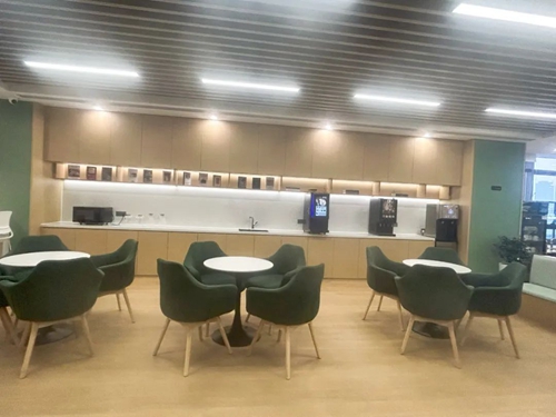 園區(qū)餐廳:規(guī)劃公共就餐區(qū)、卡座就餐區(qū)、餐包就餐間等,可容納約1000人同時(shí)就餐,滿足各類用餐需求