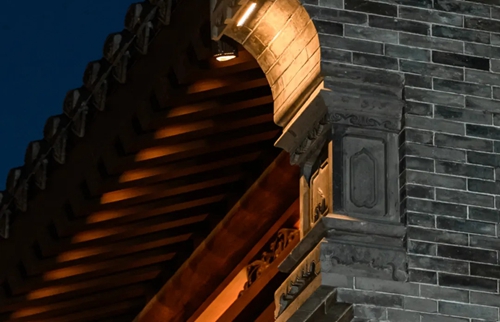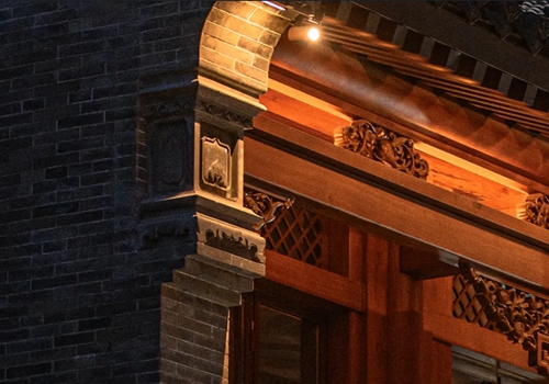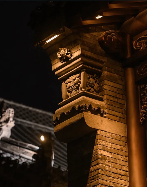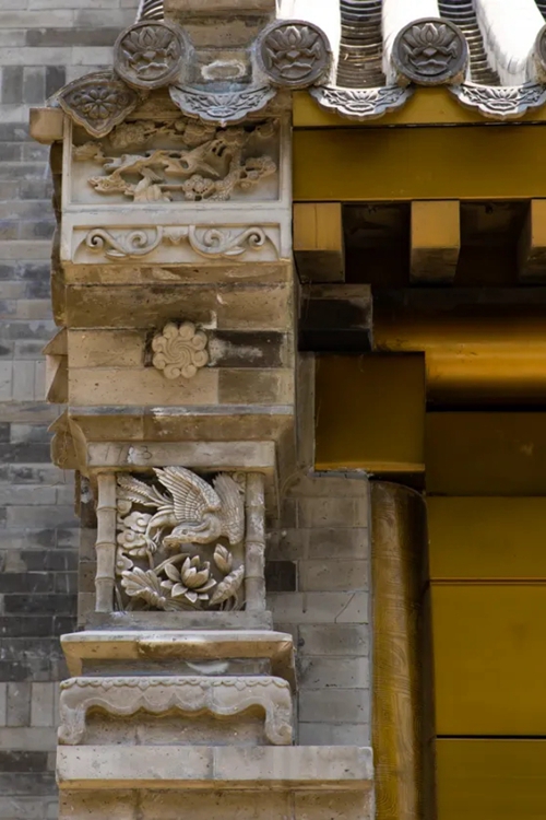 與之相對(duì)的17號(hào)樓主題為仙鶴,主題靈感來自于“仙鶴的故鄉(xiāng)”鶴壁。建筑上精美的墀頭也表達(dá)了此棟院子的主題,其上段位仙鶴,寓意松鶴延年,墀頭下端位仙鹿,寓意福祿綿長(zhǎng)。而這處雕刻精美又涵義豐富的墀頭設(shè)計(jì)來源于河南鶴壁的古城摘星臺(tái)公園。
