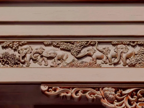 12號(hào)樓主題為獅子,主題來源于三門峽靈寶函谷關(guān),象征“事事如意”的獅子在柱子、平板枋、額枋、卡子花、假梁頭等構(gòu)件均有出現(xiàn)。