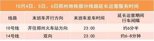 10月4日至6日,鄭州地鐵相關(guān)線路延長運(yùn)營服務(wù)時(shí)間,請您留意“鄭州地鐵”微信公眾號。