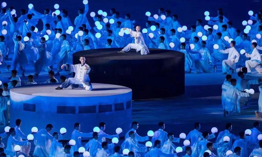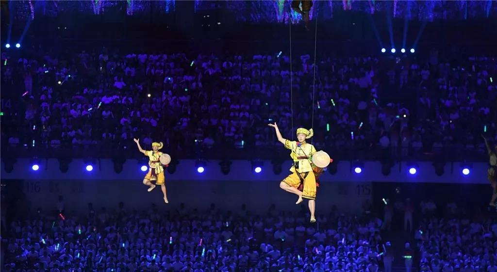 5塊總面積,超過3000平米的輕型透明網(wǎng)幕,130余臺高清投影機覆蓋上萬平米場地,通過威亞的技術(shù)手段和地面投影相呼應(yīng)。地面、空中、立面多維度的表演空間,將各種特色民族元素呈現(xiàn)出來,呈現(xiàn)了各族人民的幸福生活,書寫出一張張民族文化名片。當現(xiàn)場各族人民跳起歡快的舞蹈,當各民族美麗的服飾在現(xiàn)場轉(zhuǎn)出最絢麗的弧度,展現(xiàn)出各民族團結(jié)奮進、朝氣蓬勃的精神風(fēng)貌。作為河南特色的少林和太極兩個重要元素也在本次開幕式精彩亮相,由塔溝武校數(shù)千名演員演繹。隨著音樂節(jié)奏的轉(zhuǎn)換,他們變幻各種造型,動靜結(jié)合、氣勢恢宏,讓觀眾更加了解精彩河南。