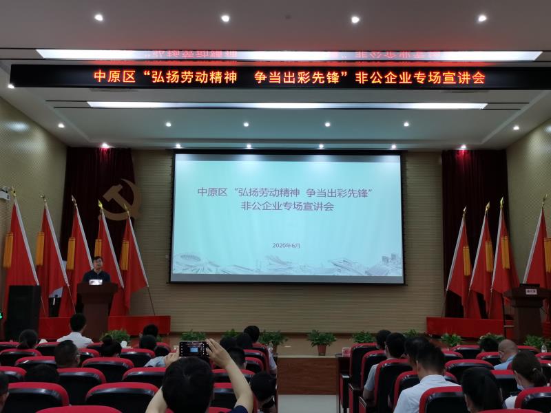 為充分發(fā)揮中原新區(qū)聯(lián)合黨委基層黨校在黨的理論教育上的主陣地作用和在黨性教育上的大熔爐作用,在黨校中弘揚習近平總書記給圓方集團職工的重要回信精神,真正使聯(lián)合黨委基層黨校成為黨員干部思想政治教育的紅色殿堂,6月5日和9日,中原區(qū)“弘揚勞動精神 爭當出彩先鋒”企業(yè)、班組專場及非公企業(yè)專場宣講會在中原新區(qū)聯(lián)合黨委基層黨校舉行,中原區(qū)委組織部組織科科長蔚光勛、西流湖公司副總經(jīng)理昌磊出席活動,共有來自中原區(qū)各街道辦事處、各企業(yè)的150余名黨員職工聆聽了宣講。